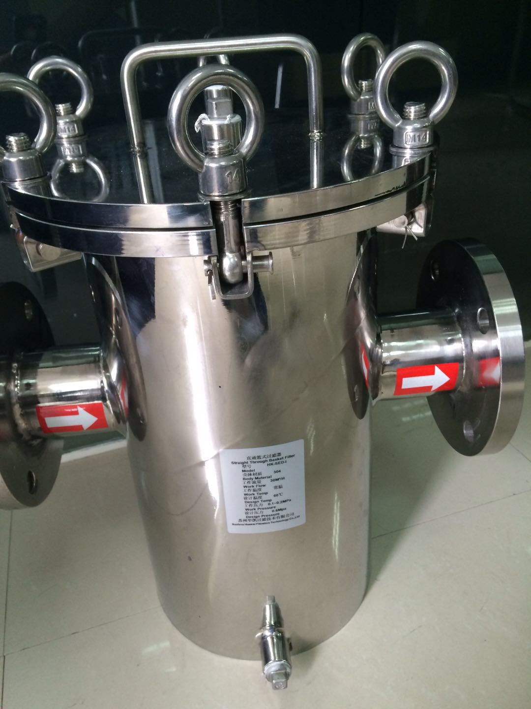 籃式過濾器 管道過濾器主要由接管、筒體、濾網(wǎng)、法蘭、法蘭蓋及緊固件等組成。主要作用是安裝在管道上能除去流體中的較大固體雜質(zhì),使機器設(shè)備(包括壓縮機、泵等)、儀表能正常工作和運轉(zhuǎn),達到穩(wěn)定工藝過程,保障安全生產(chǎn)的作用。工作原理是當(dāng)流體通過濾網(wǎng)時,固體雜質(zhì)顆粒被阻擋在濾網(wǎng)內(nèi),而潔凈的流體通過濾網(wǎng)、由過濾器出口排出。當(dāng)需要清洗時,打開排凈口,排凈流體,拆卸法蘭蓋,清洗濾網(wǎng)后重新裝入即可。因此,使用維護極為方便。蘇州華凱過濾技術(shù)有限公司專業(yè)生產(chǎn)非標(biāo)定制型產(chǎn)品。歡迎咨詢。